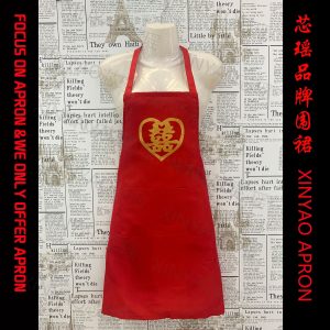 Wedding Apron, Joyful Red Apron for Bride, Joyful Red Wedding Celebration Apron, Red Kitchen Bridal Dowry Decoration for Home Use